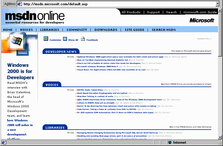 Have you looked at any Microsoft web pages lately using IE5 for Windows, and found the fonts illegibly small? I have. Here's a screenshot of MSDN where the viewport takes up 20cm by 12.5cm of my screen. This is illegibly small.
