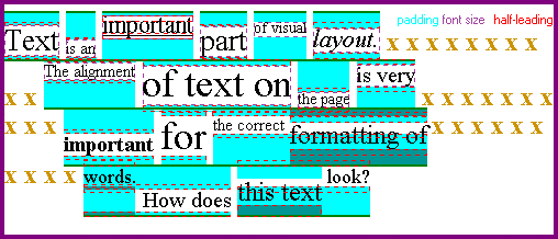 A sequence of ten xs indicates where I expect a line break to be. It's fine if all ten of the xs are on the end of the old line rather than the beginning of the new line, but if anything after the xs is on the old line, then that's a problem. If your browser is showing a line-break somewhere else, but seems to be showing the rest of the test with some accuracy, let me know, and send me a screenshot. If the line breaks aren't where the xs are, then the test results are not valid. Also, please let me know if you find any errors in the CSS, i.e., anything that would cause the green lines not to line up in a CSS2-conformant browser. My email address is dbaron@dbaron.org.